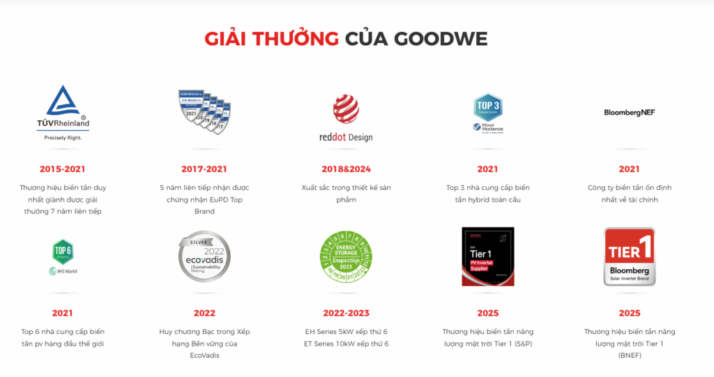 Goodwe là thương hiệu top đầu thế giới về Inverter Hybrid. Sản phẩm của Goodwe nổi bật với: